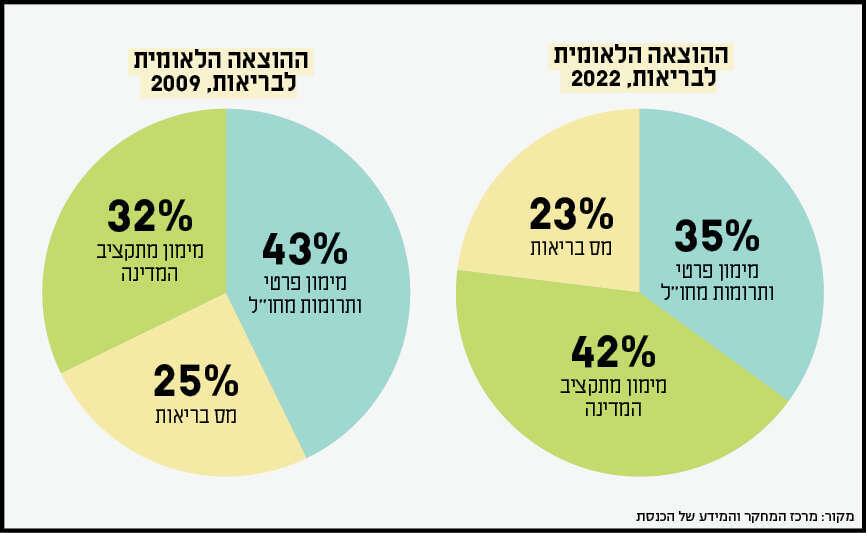 עוד מיתוס שמושמע שוב ושוב מדבר על "הרעבה" או "ייבוש תקציבי" של מערכת הבריאות. המונח הזה הפך למושכלת־יסוד עבור פוליטיקאים, עיתונאים ואינטרסנטים מתחום הבריאות, שמפמפמים אותו ללא הרף כדי לדרוש עוד תקציבים. יש איתו רק בעיה אחת: הוא פשוט לא נכון. תסתכלו בשתי העוגות שאפתה הלשכה המרכזית לסטטיסטיקה: אחת משנת 2009, במקרה גם שנת עליית הליכוד לשלטון, והשנייה מהשנה שעברה. הנתח הממשלתי של המימון מתקציב המדינה ומס בריאות עלה מ־57% ל־65%, בעוד המימון הפרטי דווקא יורד.