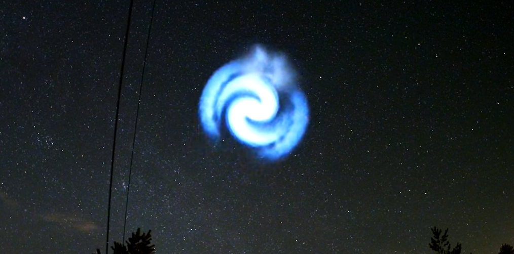 ספירלה כחולה ולבנה שנראתה אתמול (שני) בשמי צרפת ובריטניה נגרמה ככל הנראה מפליטת גזים של טיל של חברת SpaceX, כך מסרו חזאי מזג האוויר בשתי המדינות.