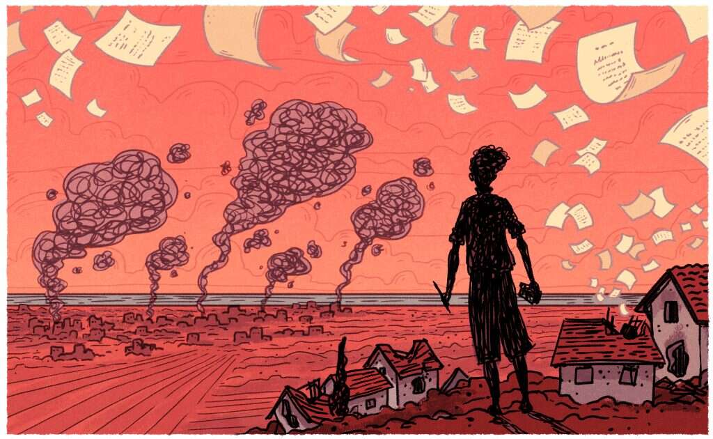 כשקם אני משולחן הכתיבה שלי ויוצא אל מחוץ לחדרי, ליד שער הקיבוץ רואה אני אותם מחנות פליטים מעבר לגבעות בגבול רצועת עזה. הייתכן שחוויית יסוד זו של סכסוך הנמשכת מאז נעורי לא תהיה משוקעת בכתיבתי; אני שגדלתי על כך שמגדל שן לא מגן על אף אחד ושאסור להסתגר מפני הסביבה, מפני תקוותיה ומפני מכאוביה – הייתכן שלא אכאב גורלם של ילדים ונשים הנולדים וגדלים בייאוש של אין תקווה ואין עתיד, ושל ילדים בקיבוץ שלי עליהם לישון שנים במקלטים.