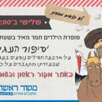 שידור חי ב-12:00: סופרת הילדים תמר מאיר בשעת סיפור מיוחדת"סיפור העגלה": על ארבעה חסידים נוסעים בעגלה וניגון מיוחד שבעזרתו מתגברים על כל מכשול. שידור חי בעמוד הפייסבוק של מקור ראשוןמערכת מקור ראשוןמערכת מקור ראשון