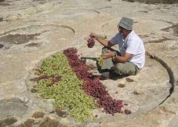 18 משטחים עגולים שנמצאו באתר עתיקות בנווה־צוף, מצבור שנדמה שאין שני לו בעולם, כנראה מעידים שכאן ייצרו בעבר יין מיוחד ...